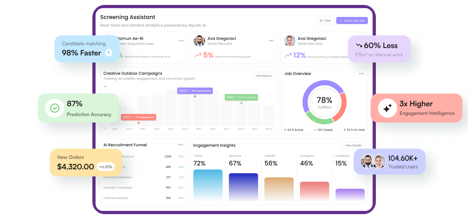 Niyukti.ai gives your team the power to recruit faster, smarter, and more efficiently.